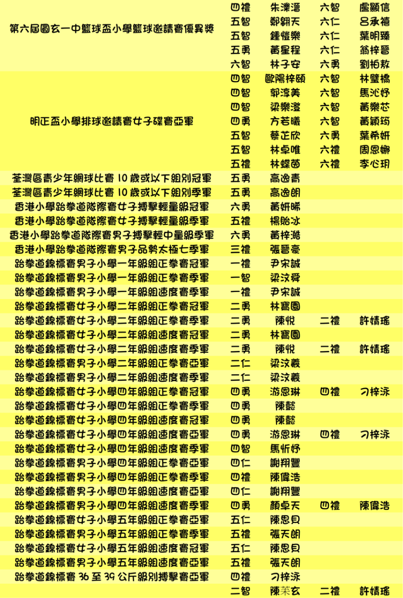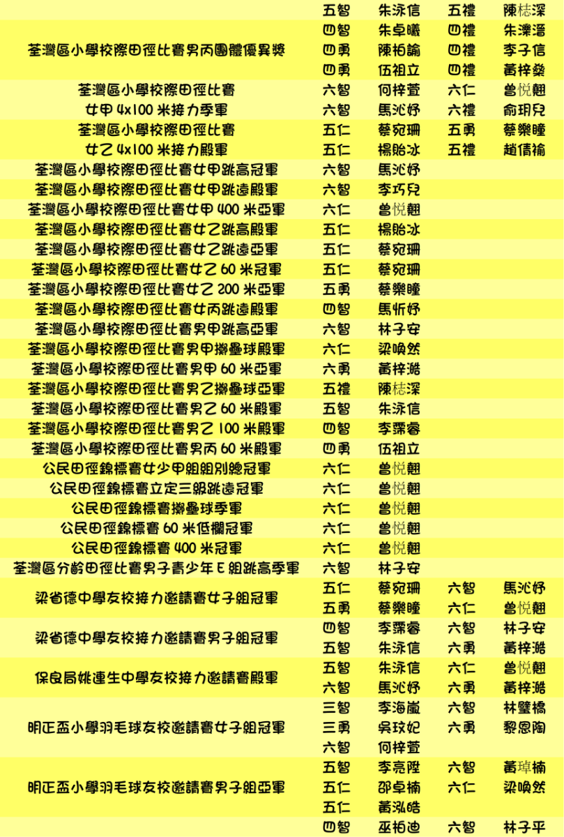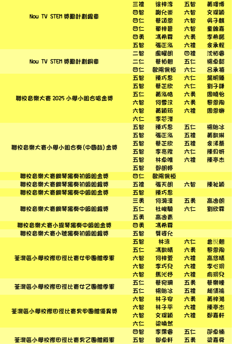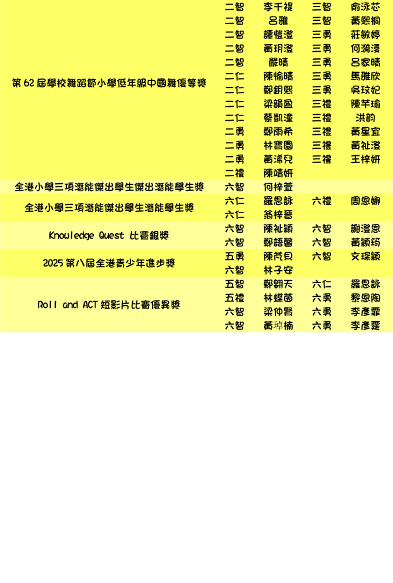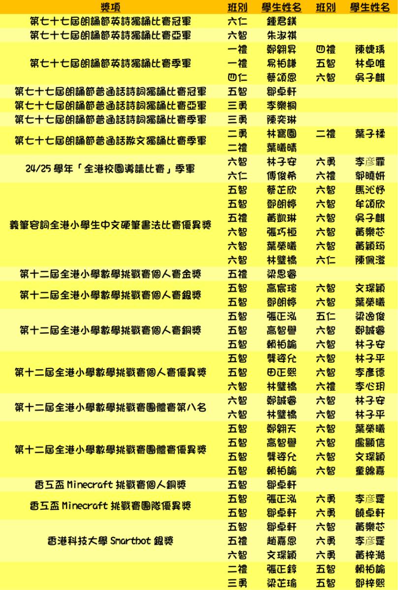 本年度學生獲獎記錄(截至